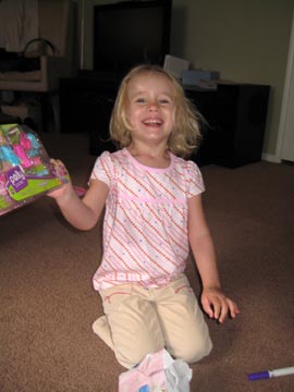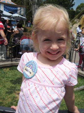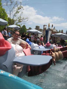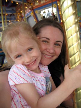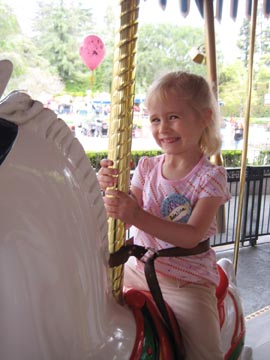The first ride she picked was the carousel. We also went on the Dumbo ride, It's a Small World (twice), the Winnie the Pooh ride, the Haunted House, and the Pinnochio ride |