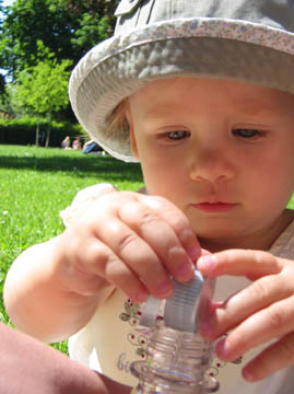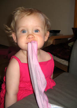 Helping my friend Nora with her bottle (after I stole it from her!) |