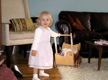 When asked if she wanted to go outside, Adeline immediately ran back sporting mom's shoes and purse - ready! |