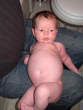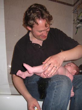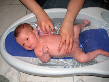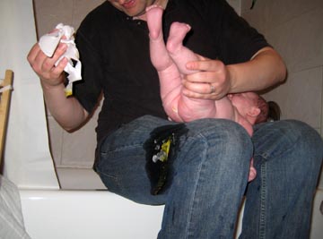 Mom and dad got me ready to have my first bath (5/9), but I had a surprise for dad first |