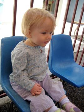 Waiting in line for her second (and by far her favorite) ride |