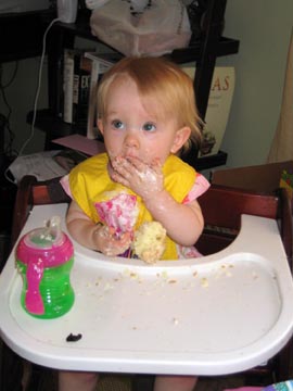 Enjoying her second cupcake experience |