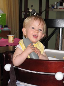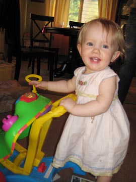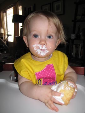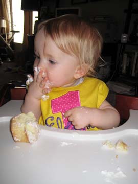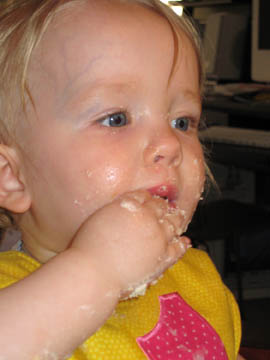 Eleanor liked the frosting best of all but managed to eat a decent amount of the cake too |