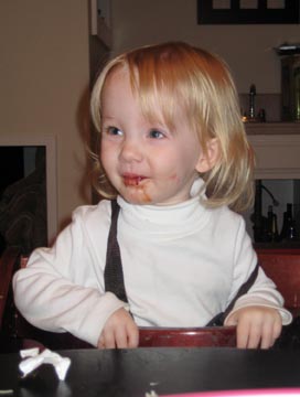 Enjoying her second ever Thanksgiving dinner |