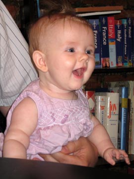 Laughing at her sister's antics |